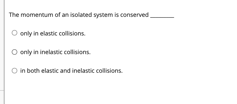 Post a Comment for "The Momentum Of An Isolated System Is Conserved In Elastic Or Inelastic"