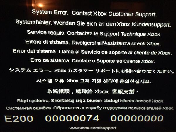 System error e200 00000074 00000000. Plug brick and cable together ensure connection is good. Restart your network device most likely a router. Once reconnected to the Xbox One.