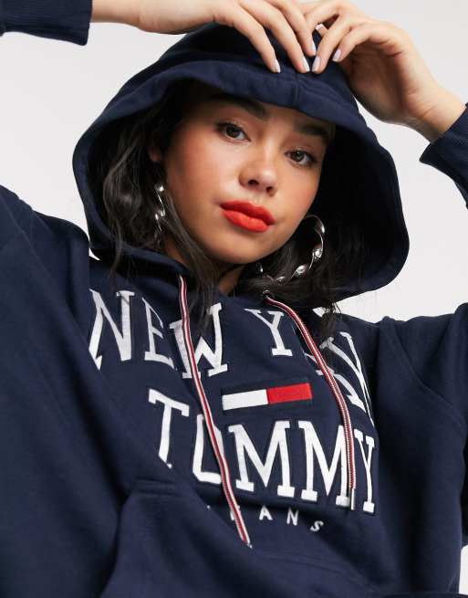 Shop Tommy Hilfiger Womens Dresses Jumpsuits For The American Look With A Preppy Twist. Explore Tommy Jeans your go-to for premium jeans and streetwear from Tommy Hilfiger. Part of our Tommy Jeans collection. This Product Contains Independently Certified O. Tommy Hilfiger womens sweatshirt. Tommy Jeans New York logo boyfriend hoodie-Navy Hoodie by Tommy Hilfiger Throw on and go Drawstring hood Dropped shoulders Branded design Pouch pocket Ribbed trims. 7999 11299 besparen 33. Skip to Main Content. When feeling cozy is your vibe this is the one-piece wonder to reach for.